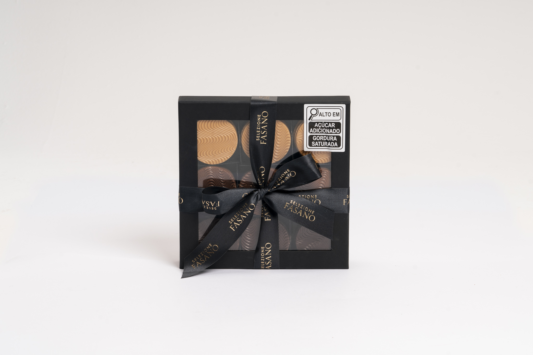 Discos de Chocolate Belga Fasano: 45 unidades de puro chocolate belga nas versões ao leite (33,6% cacau), caramelo gold e meio amargo (50,1% cacau). Ideais para saborear ou harmonizar.
