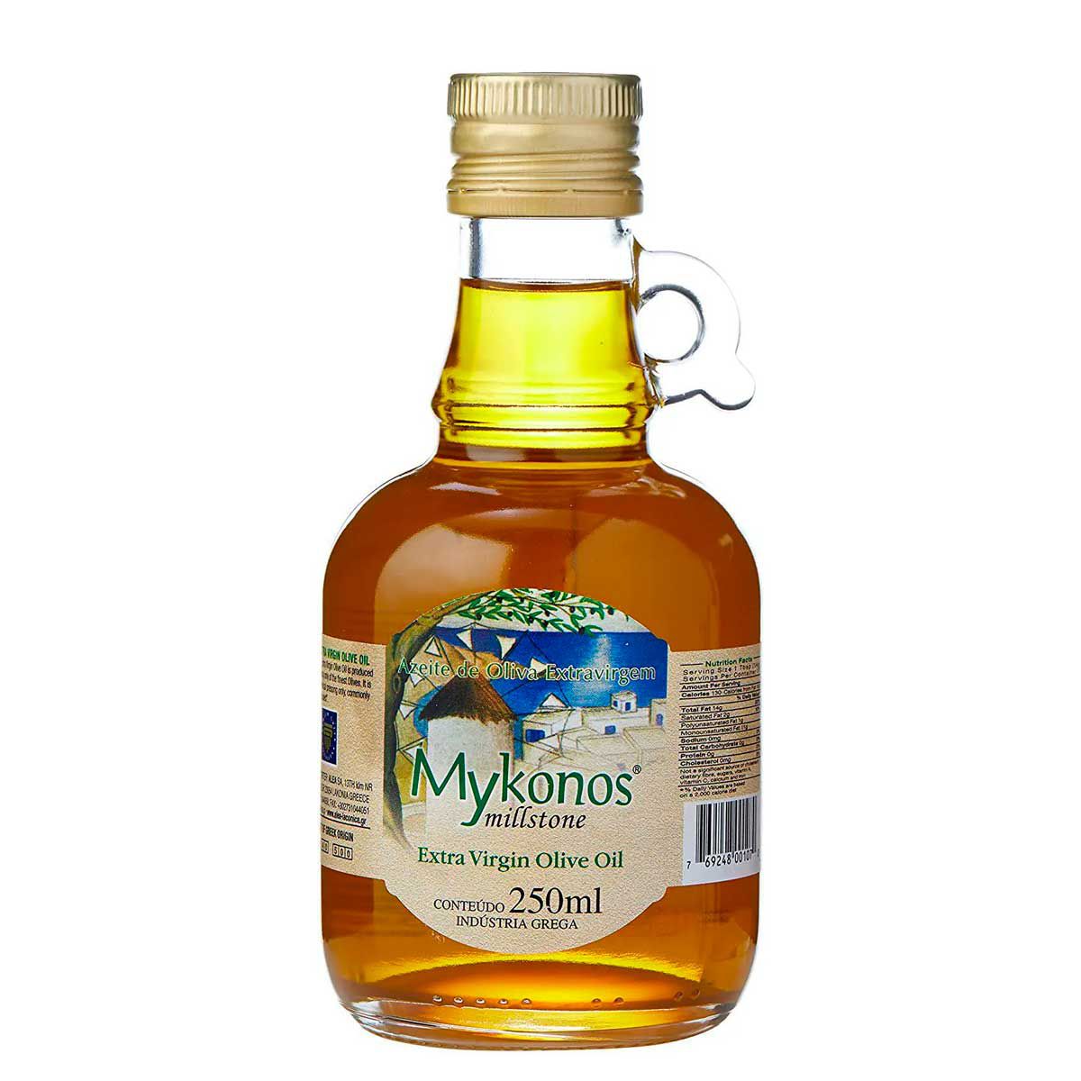 O azeite mykonos apresenta coloração verde-dourado, é brilhoso, e possui notas aromáticas de frutas frescas e final de boca. Vem da Grécia em embalagem de vidro com 250ml.