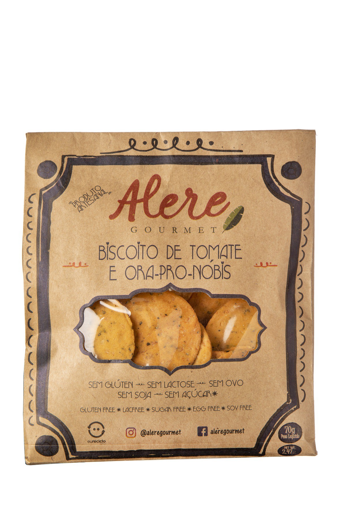 O biscoito de tomate e ora-pro-nóbis é uma PANC (Planta Alimentícia não convencional) da biodiversidade brasileira. Conhecida pelo seu alto teor de proteínas (20%), altas concentrações de fibras e minerais. Sem contar que em sua composição não vai ovo, lactose, soja e glúten.