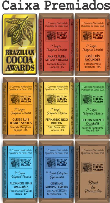 Essa caixa contém os chocolates dos Cacaus Premiados no "Brazilian Cocoa Awards 2020". É uma edição limitada, produzida pela "Casa Lasevicius", apoiada pelos organizadores do concurso e pelos participantes premiados que forneceram as amostras dos cacaus na época da premiação.