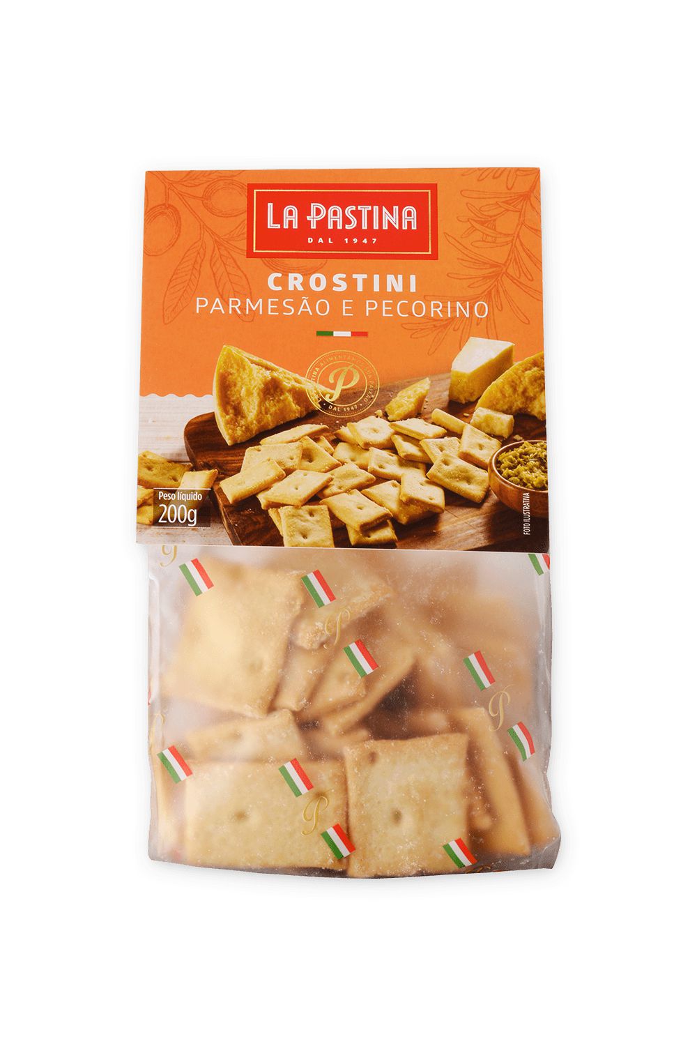 O crostini é um biscoito típico italiano, assado e elaborado à base de farinha de trigo, azeite de oliva, sal e temperos frescos. Feito com dois tipos de queijo muito apreciados na Itália, o Crostini La Pastina Parmesão e Pecorino é delicioso com sopas, patês, antepastos e bruschettas ou simplesmente sozinho, como um snack.
