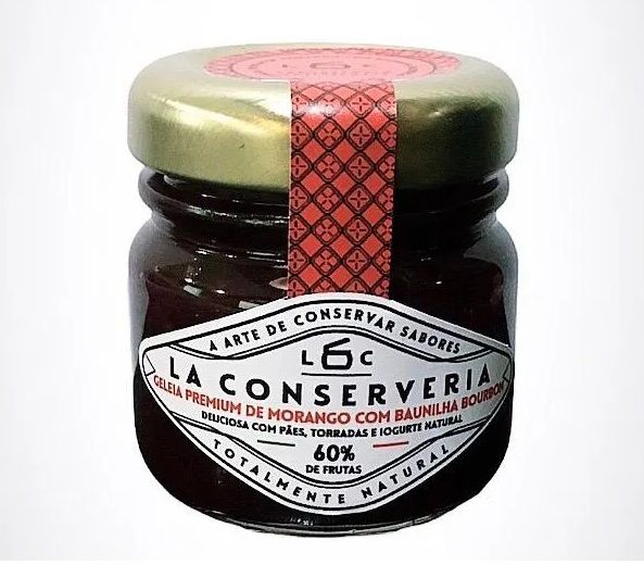 GELEIA DE MORANGO BAUNILHA E BOURBON LA CONSERVERIA 40 GR