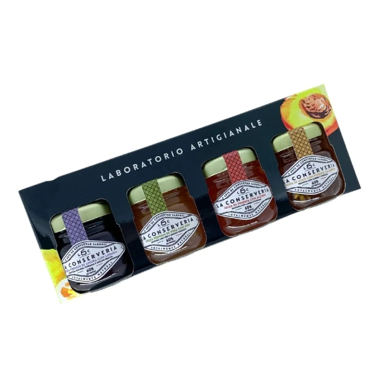 O Kit de Geleias da La Conserveria é preparado por mãos legítimas italianas, que trazem memórias de Puglia e cuidam de todo o processo de criação e produção, colocando a paixão gastronômica da Península Itálica em cada produto, além de manter o percentual de 60% de frutas, em suas receitas que garantem o selo de linha Premium devido à quantidade de açúcar reduzido, tornando o sabor das frutas o verdadeiro protagonista.