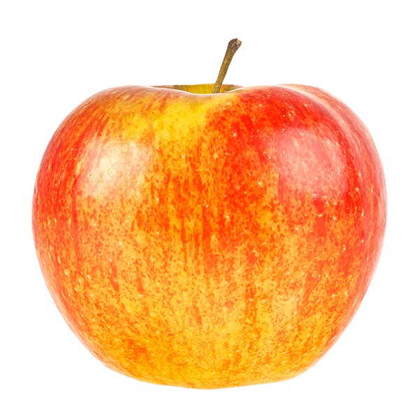 Maçã Fuji, apresenta cor vermelha sobre o fundo verde, indicada para pratos doces. Os nutrientes da fruta ajudam a combater os radicais livres e o envelhecimento precoce.